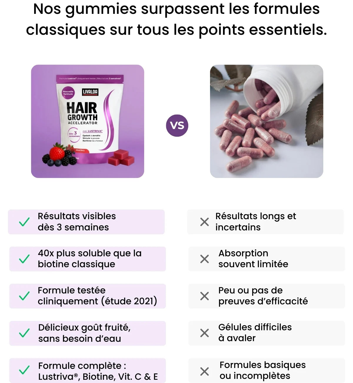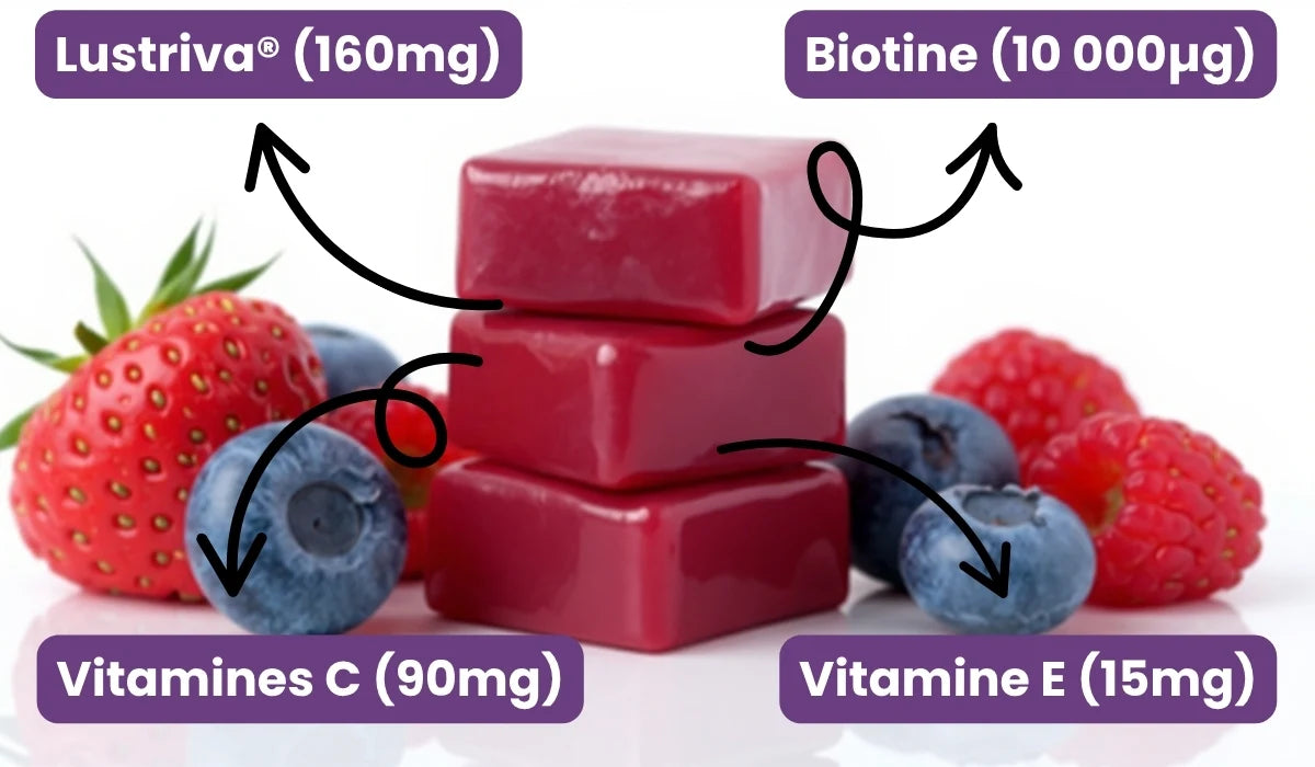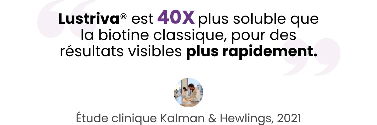 Notre Accélérateur de Pousse Capillaire est formulé avec Lustriva®, une forme brevetée de biotine et de silicium reconnue pour sa biodisponibilité supérieure.